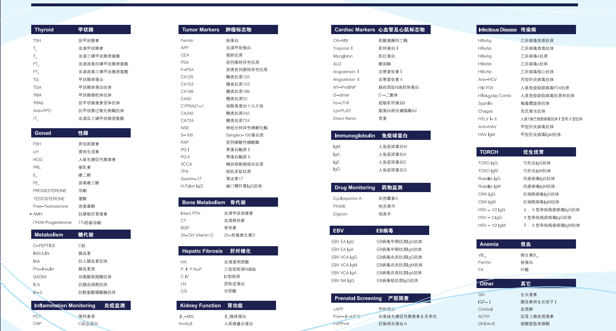 3.檢測項目涵蓋感染/炎癥疾病、心血管疾病等多種疾病標志物檢測。