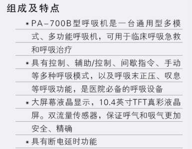 1、通用型、多模式、高功能、有創和無創,氣動電控型呼吸機,可用于臨床呼吸急救和呼吸治療。