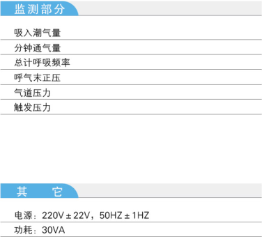 29、監測參數:潮氣量、頻率、氣道壓力、吸呼比、吸氣和呼氣狀態、吸氣觸發狀態等。