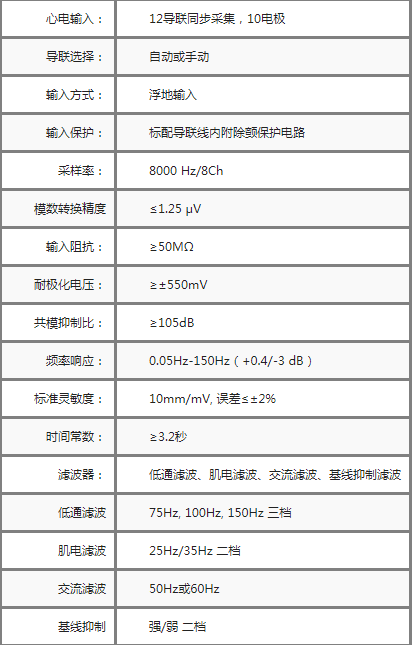 11、3通道/(3+R)通道/(3+Ⅱ+V5)通道/ 6通道/(6+R)通道/12通道六種心電記錄組合模式;
