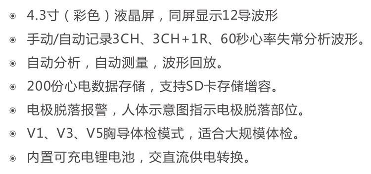 2、7/10.1寸高清彩色液晶顯示屏,全觸摸操作,12導聯同屏顯示;