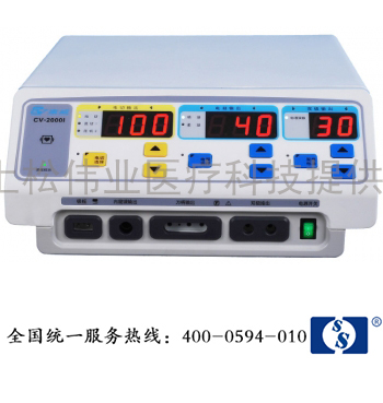 面向中、大型醫院。智能化主機,具有純切'混切1、混切2、單極接觸凝等功能;既可手控又可腳控;輸出功 率數字化顯示;電腦自動判斷設備及操作故障,數碼顯示故障類型,聲光報警。設有中性電極連續性檢測器,可使 用單極中性電極,當中性電極電纜或其連接器出現電氣中斷時,提供報警。設有中性電極接觸質量檢測器(CQM), 可使用可監測中性電極(雙極中性電極),在中性電極與患者接觸變差時提供報警。可連接內窺鏡用附件,配合內 窺鏡進行手術。適用于普外、骨外、胸外、心臟、婦科、泌尿、肛腸、腫瘤、整形、整容等外科手術。