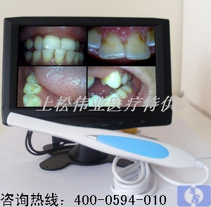 包括一個7"液晶顯示屏,十分便攜,可以拎著到任何有電源地方使用,操作簡單方便.它可找到你看不到的死角,輕輕按一下拍攝按鈕使用可拍下口腔全景。