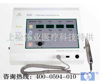 產品簡介: FUE毛囊鉆取機為可自動重復進行毛囊選取技術所需的手動操作的設備,利用精密、準確、可控制的操作手機,提取單個毛囊單位,具有自動統計提取毛囊單位的計數功能,可在后枕部和身體其他部位提取毛囊種植到頭頂,,大量彌補頭發資源不足的缺點,一次性解決脫發的煩惱,革命性的改變了傳統毛發移植的手術方式,不切頭皮不留瘢痕。