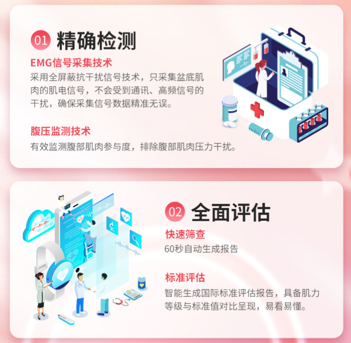 探頭&貼片電極:多種成人陰道/肛門探頭可供選擇。壓力描記功能為盆底力量訓(xùn)練提供新選擇。貼片電極皆適用于兒童和成年。