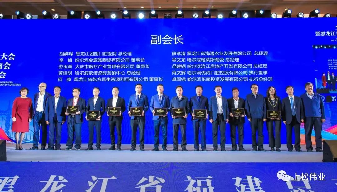 會上宣讀黑龍江省福建總商會新一屆名單。龍閩各級領導先后為商會名譽會長頒發聘書,并為商會新一屆會長、黨委書記、執行會長、監事會主席、理事長、秘書長、常務副會長、副會長授牌。黑龍江省福建總商會監事會主席楊秀林為新一屆監事成員授牌。