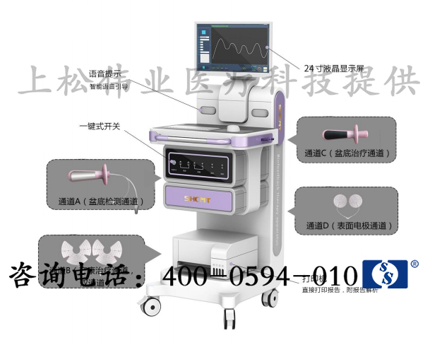 1、集盆底評估、治療和產后康復于一體,儀器開展覆蓋盆底障礙和產后康復。