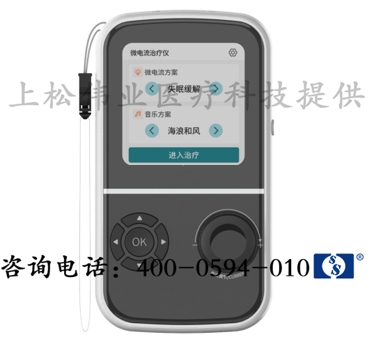 1. 微電流治療儀通過(guò)夾在耳垂上的一對(duì)電極向大腦中樞神經(jīng)傳遞特殊波形的微電流,促使大腦分泌一系列與情緒等相關(guān)的神經(jīng)遞質(zhì),改善異常腦電波,同時(shí)進(jìn)行音樂治療,從而治療或改善失眠癥狀;