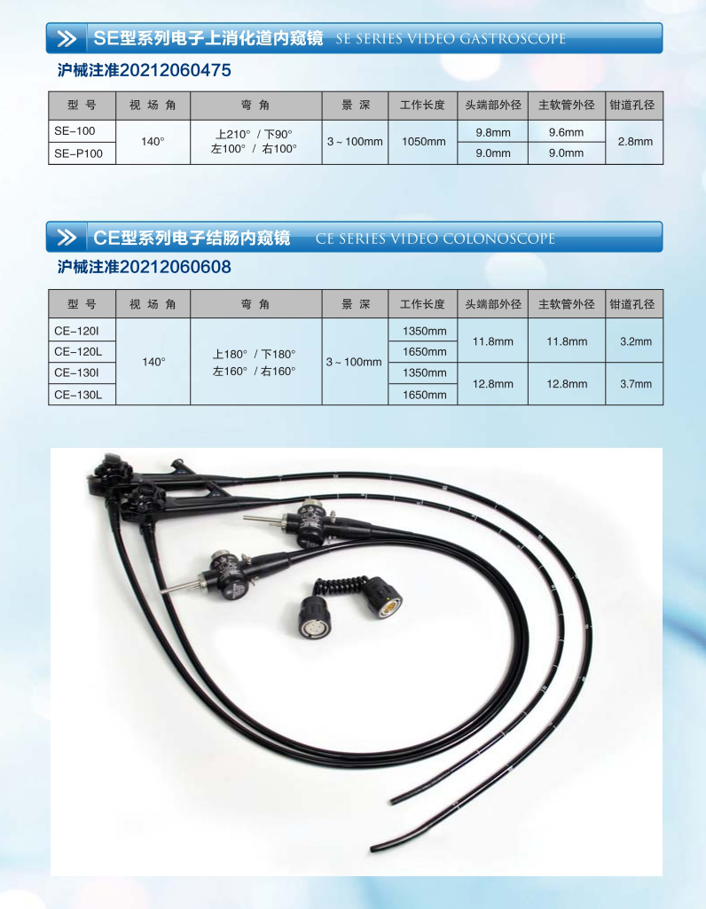 5、器械鉗道內徑: CE-130I≥3.7mm;