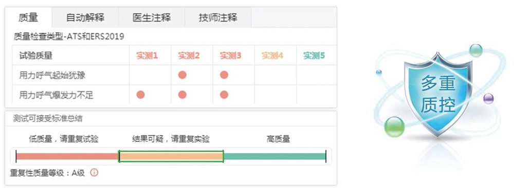雙向連續檢測,吸氣和呼氣動作連貫完成無中斷,實時檢測呼吸流量和顯示容積一時間曲線,確保檢測過程符合肺功能檢查質量控制標準;