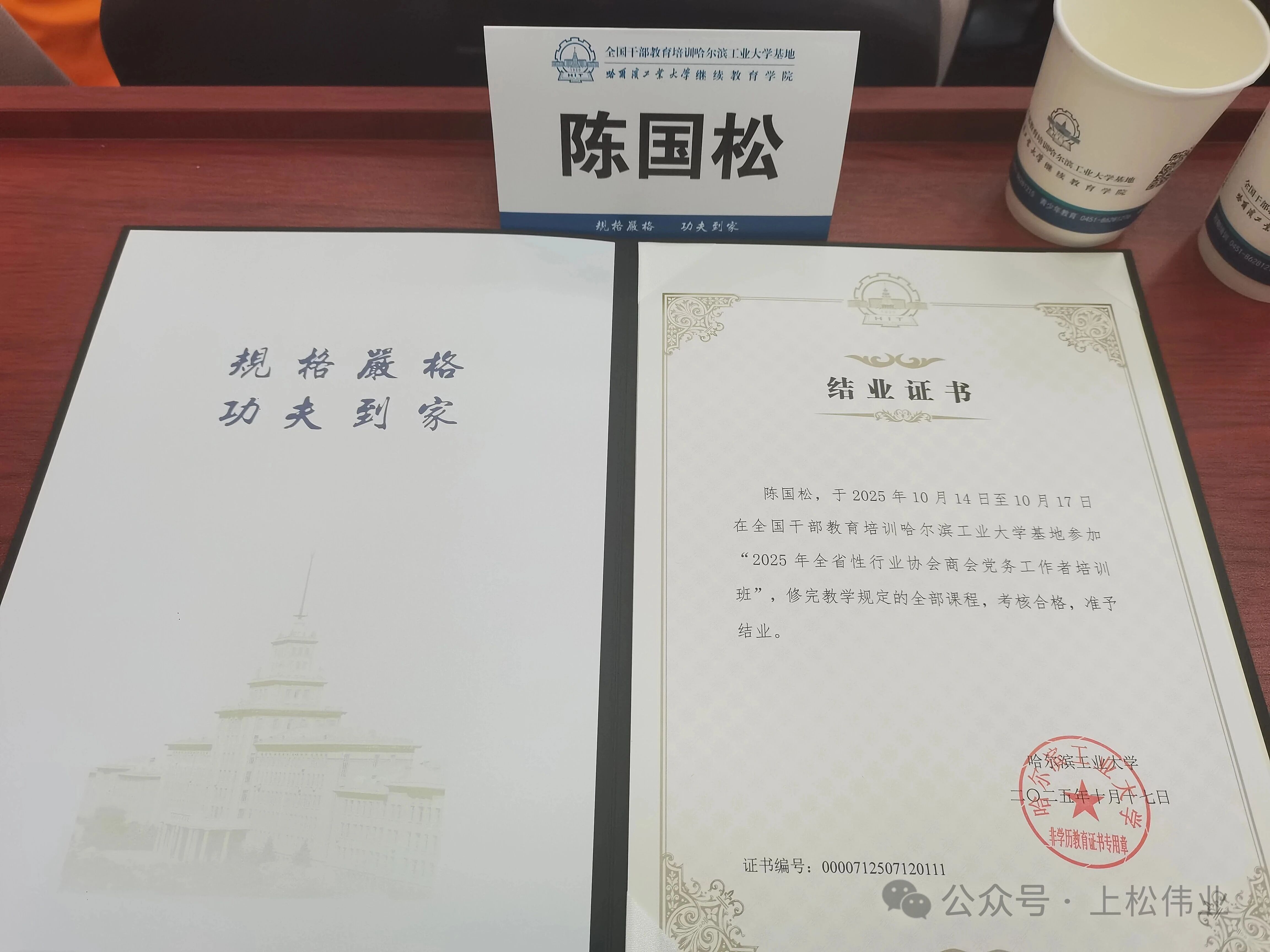 為深入貫徹落實習近平總書記關于社會工作的重要論述和重要指示精神,積極響應黨中央、省委關于加強行業協會商會黨的建設和改革發展的部署要求,10月15日至17日,中共黑龍江省委社會工作部在哈爾濱工業大學全國干部教育培訓基地舉辦了2025年全省性行業協會商會黨務工作者培訓班。我公司總經理、黑龍江省民營醫療健康服務協會秘書長陳國松同志,作為全省性行業協會商會黨建工作指導員,全程參與培訓。