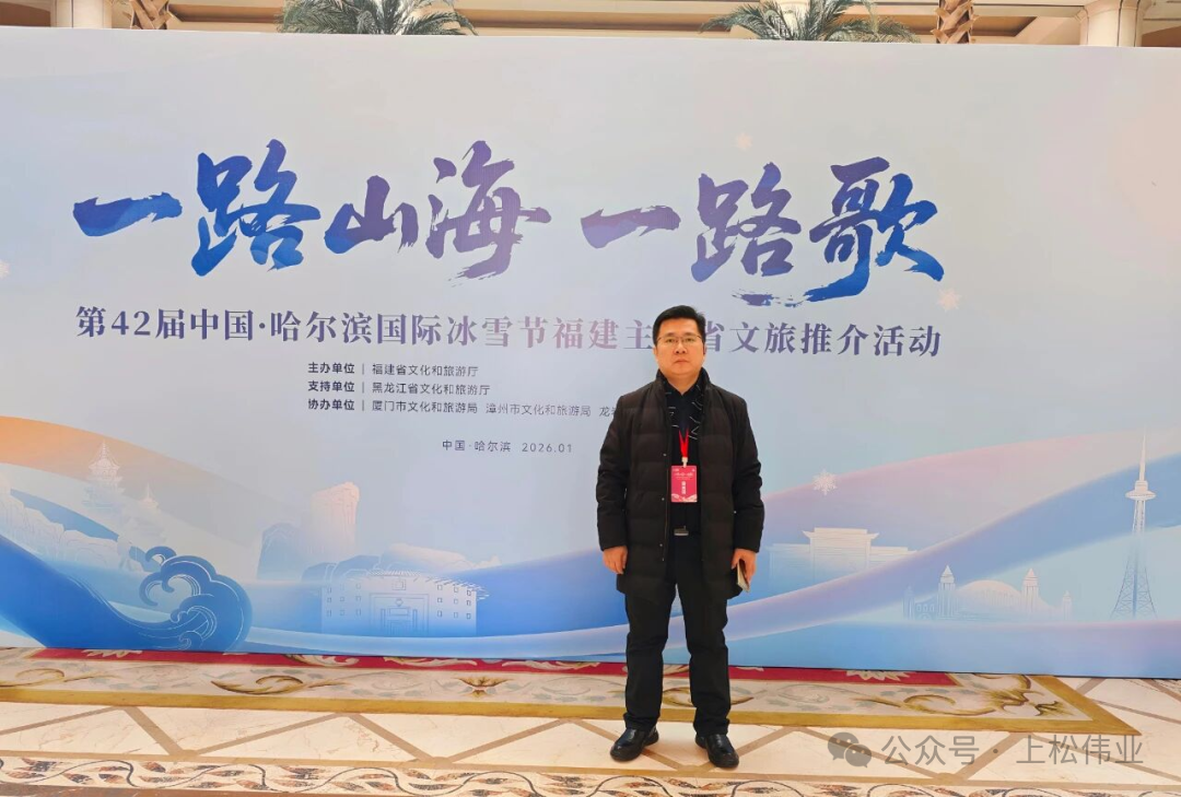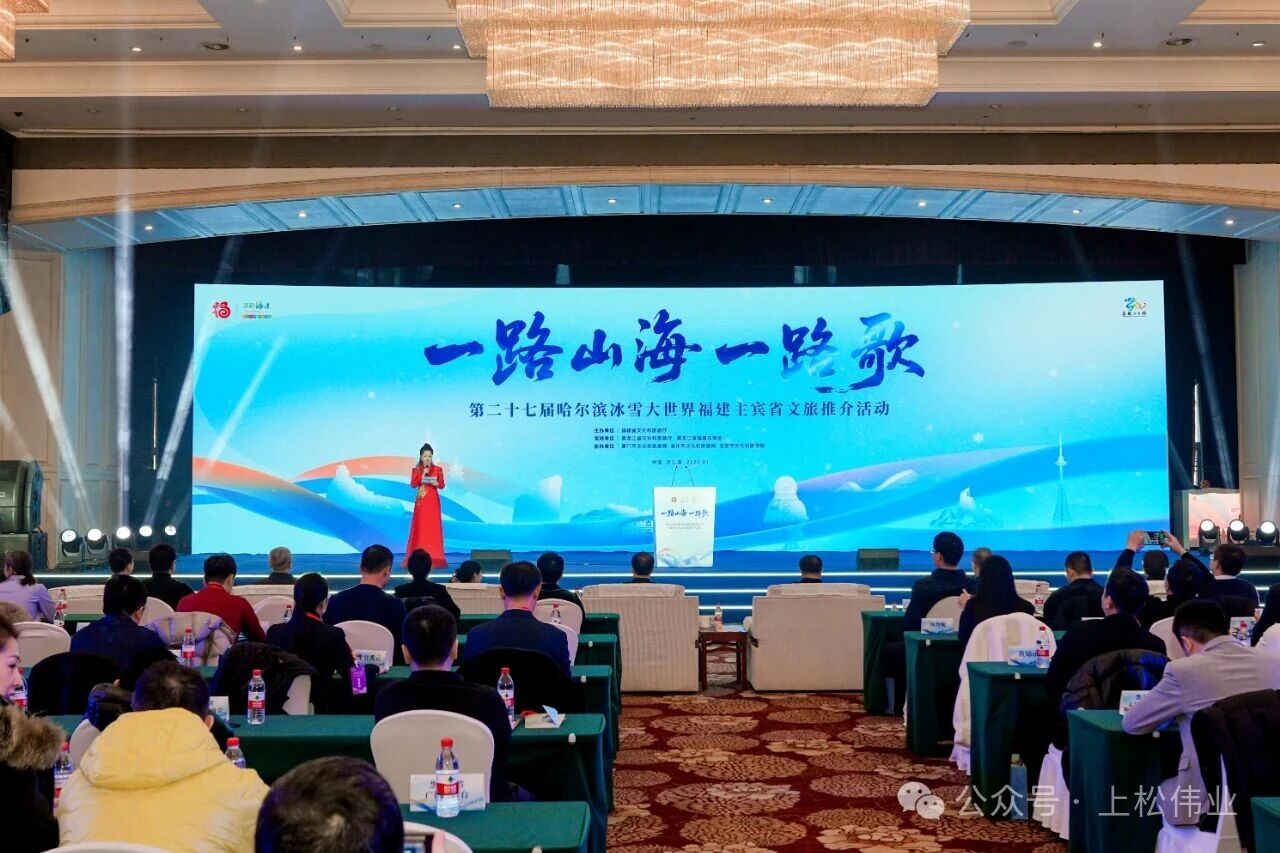 活動現場播放了文旅宣傳片《冰雪福緣》,發布“龍游福氣”旅游產品包,啟動“交換冬天·樂享福年”文旅惠民計劃,雙方文旅企業舉行集中簽約。“浪花慕雪白,樂享福年來”福建文旅圖片展、“福氣臨門,閩韻流芳”福建非遺展演等活動也同步開啟。福建省文旅廳廳長張源生、黑龍江省文旅廳廳長何晶,哈爾濱市委常委、宣傳部部長蘭峰,哈爾濱市政府副市長王波等兩省市相關領導,以及哈爾濱市、廈門市、漳州市、龍巖市文旅部門負責同志參加。黑龍江省福建總商會會長吳慶和、秘書長湯丹妮、上松偉業醫療科技(哈爾濱)有限公司總經理陳國松、上京偉業科技發展(北京)有限公司辦公室主任金慧亭以及其他部分企業代表參會,共同見證這場南北文旅融合的盛會。