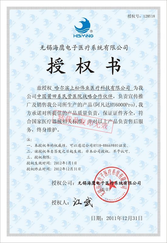 哈爾濱上松偉業醫療科技有限公司 傳真:0451-82280266 地址:黑龍江省哈爾濱市南崗區紅旗大街170號海格孵化基地8層