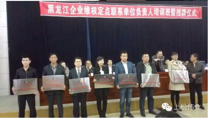 上松偉業(yè)醫(yī)療科技(哈爾濱)有限公司被授予企業(yè)維權(quán)定點(diǎn)聯(lián)系單位的榮譽(yù)