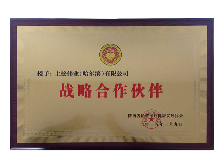 陜西省民營醫療健康發展協會授予上松偉業戰略合作單位稱號