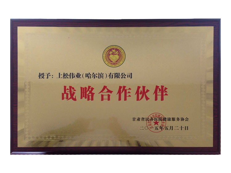 甘肅省民辦醫院健康服務協會授予上松偉業戰略合作伙伴單位稱號