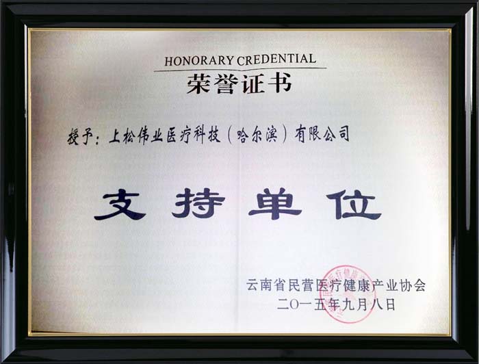 上松偉業醫療被云南省民營醫療健康產業協會授予支持單位稱號