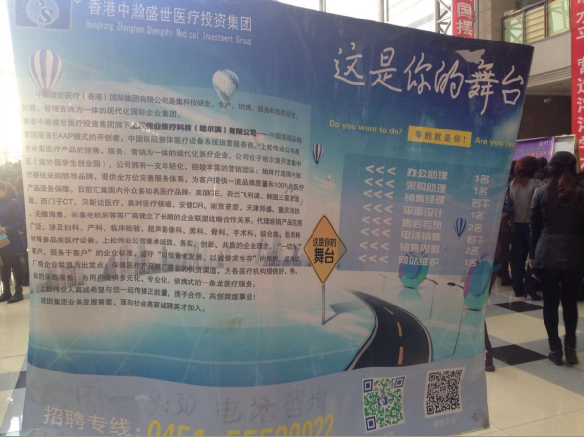近日,2015東北醫療專場招聘會在哈爾濱醫大一院舉辦,上松偉業醫療科技(哈爾濱)有限公司作為本地知名企業,受邀參加本次招聘會。公司在不斷培養創新型人才,加大公司人才儲備。同時,也不斷相應國家“雙向人才”戰略。爭取為待業人員提供更多的就業機會,以此來回饋社會。