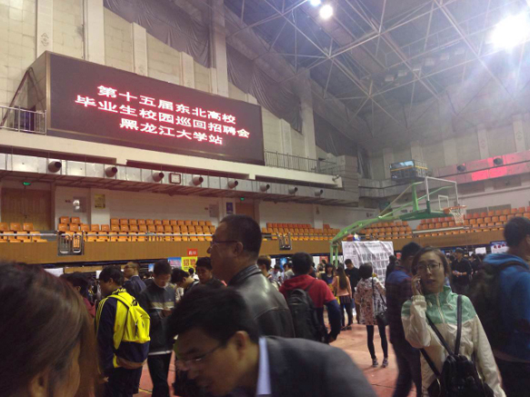 2015年9.25日第十五屆東北高校畢業(yè)生校園巡回招聘會(huì)在黑龍江大學(xué)體育館舉行,上松偉業(yè)公司于招聘會(huì)現(xiàn)場招聘。