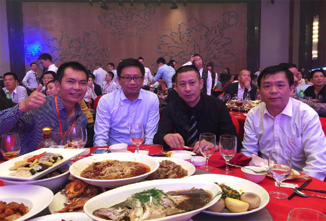 (右二)董事長陳國松先生 (左二)總經理陳國洪先生與遼寧分會詹國章監事長、蘇金琰執行會長等人親切合影