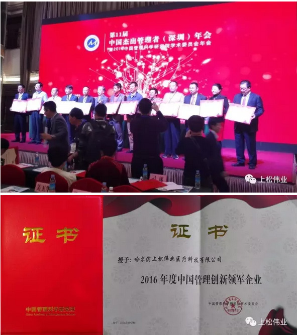 [上松喜訊] 中國管理科學研究院學術委員會暨管理創新研究所權威評定"上松偉業醫療"榮為"2016年度中國管理創新領軍企業"稱號