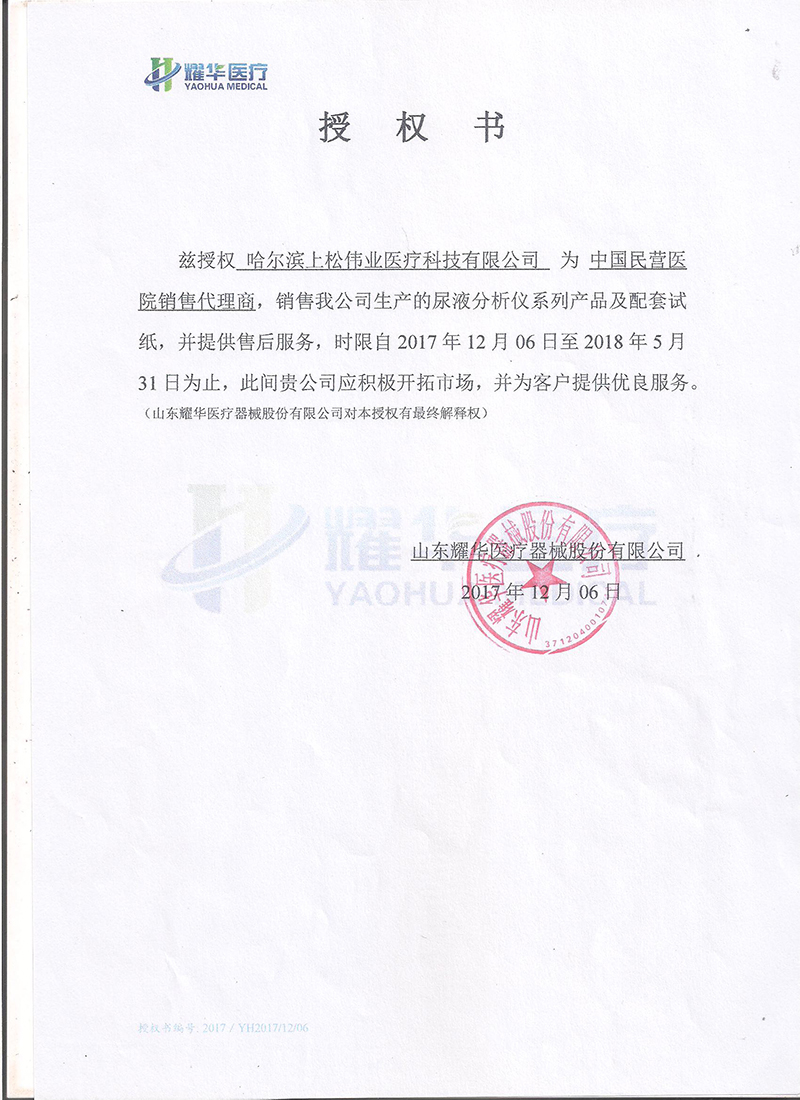 山東耀華授權書