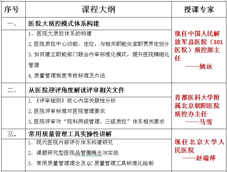 新形勢下,為幫助各級醫療機構進一步加強質量管理,減少醫療安全風險,北京英揚醫管中心決定舉辦“醫院全面質量管理體系建設培訓班”,旨在幫助各醫療機構解決實際問題,強化重點科室質控建設,提升醫療質量,有效保障醫療安全,減少醫療糾紛的發生。山東英揚醫管中心特聘國內頂尖的醫院管理專家進行現場授業解惑,特此誠邀各地各級醫院院長及骨干齊聚一地,共襄盛舉。屆時我們將為廣大醫院管理者提供一個更規范、更專業、更實用的平臺,促進醫院全面質量管理。