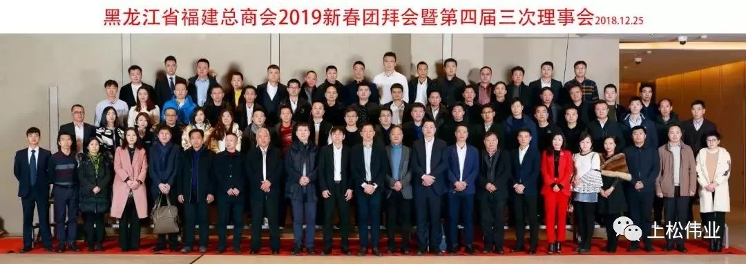 2018年12月25日,黑龍江省福建總商會慶祝改革開放40周年2019新春團拜會暨第四屆三次理事會在商會企業敖麓谷雅酒店隆重召開,商會會長吳慶和、監事會主席楊秀林、我公司董事長陳國松及全體理監事會成員出席了此次會議。