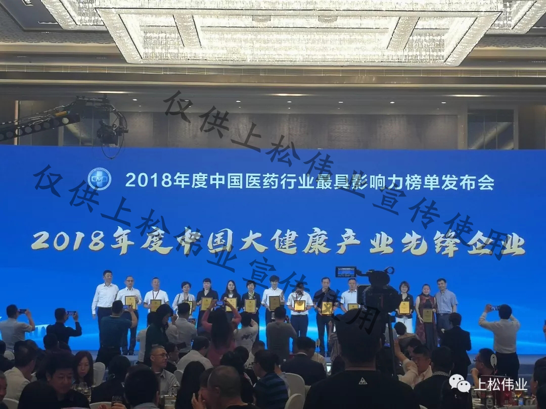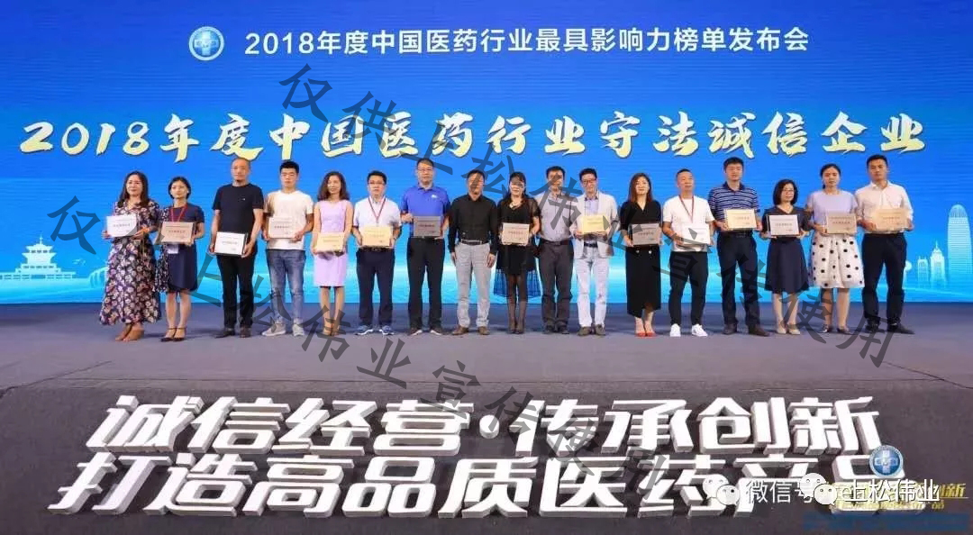 2018年度中國醫藥行業守法誠信企業頒獎(左6為上松偉業總經理上臺領獎)
