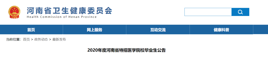 近日,河南省衛生健康委員會印發《2020年度河南省特招醫學院校畢業生公告》(以下簡稱《公告》)。