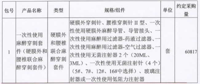 本次采購項(xiàng)目共7包,包括一次性麻醉穿刺套件(硬膜外和腰椎聯(lián)合麻醉穿刺套件)、橡膠檢查手套、PE檢查手套、一次性手術(shù)衣、醫(yī)用生物磁性敷貼(永磁愈合貼)、一次性使用產(chǎn)包、一次性使用手術(shù)包。